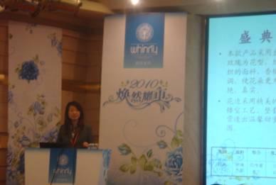 發(fā)布會(huì )上,總經(jīng)理陶勇真先生首先對加盟商的到來(lái)表示了由衷的歡迎和感謝。并作了2009年經(jīng)濟大環(huán)境的現狀和2010年戰略發(fā)展計劃展望。他說(shuō),在2009年惠誼家紡通過(guò)內部戰略調整、市場(chǎng)準備和外部資源最大化利用與整合等一系列措施,2010年惠誼家紡有能力、有信心、有實(shí)力與各位加盟商共同發(fā)展,共創(chuàng )輝煌。